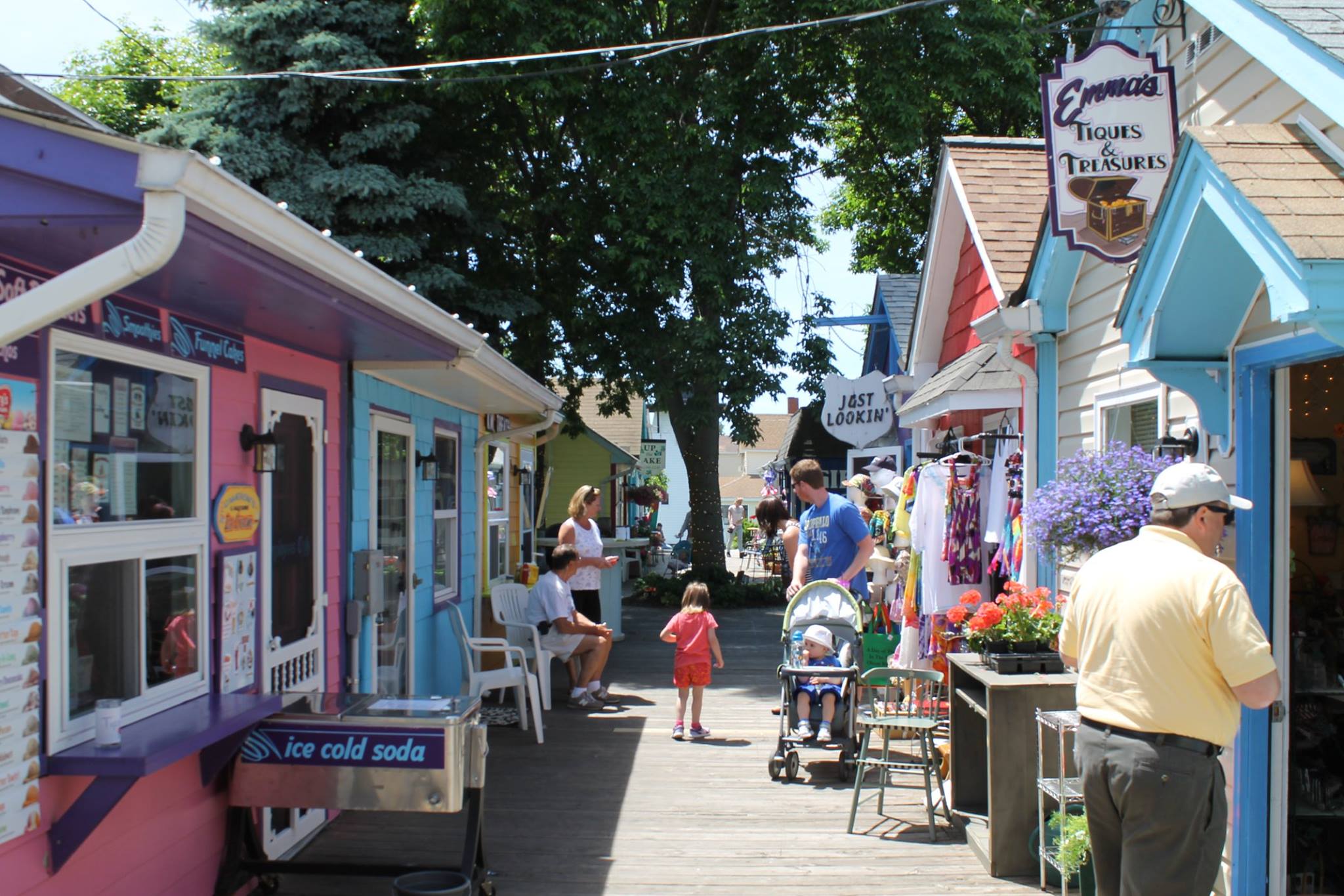 For a unique retail experience, head over to the Lakeview Village Shoppes on Ontario Street. This collection of colorful, boutique-style cottages is connected by a scenic boardwalk overlooking the harbor. Each shop is independently owned, offering a curated selection of handmade jewelry, Olcott souvenirs, eclectic home decor, and gourmet treats like locally made popcorn and artisan coffee.